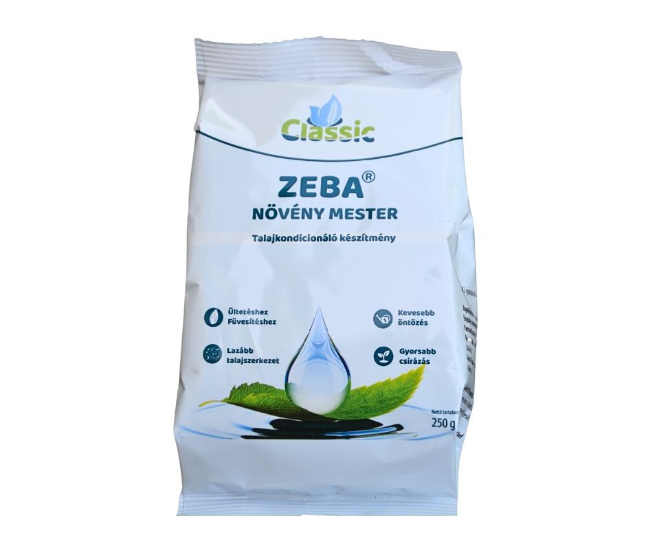A Zeba egy keményítő alapú szuperabszorbens, egy innovatív vízraktározó hidrogél, amely forradalmasítja a talaj vízgazdálkodását. Javítja a talaj nedvességmegtartó képességét, csökkenti az öntözési igényt és optimalizálja a növények növekedését.