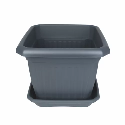 Szögletes virágcserép 40 cm szürke antracit alátét nélkül