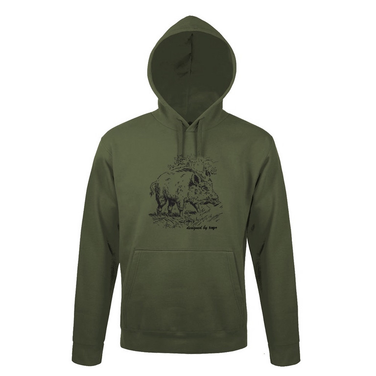 TOP horgász-vadász kapucnis pulóver, vaddisznó mintával.