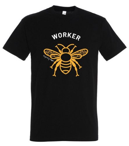 TOP_PK-H_BEE- – Méhecskés póló, deep black, Worker felirat