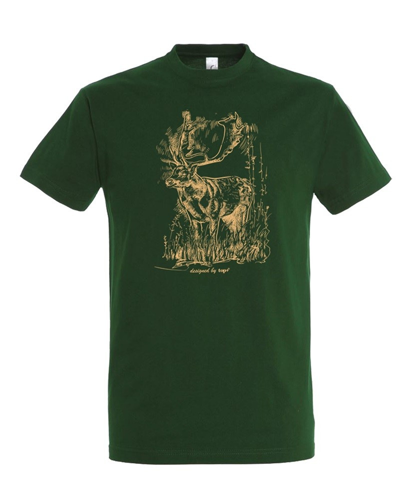 Póló (szarvas mintával) kereknyakú (100%pamut 190gr/m2) TOP, bottle green, 2XL